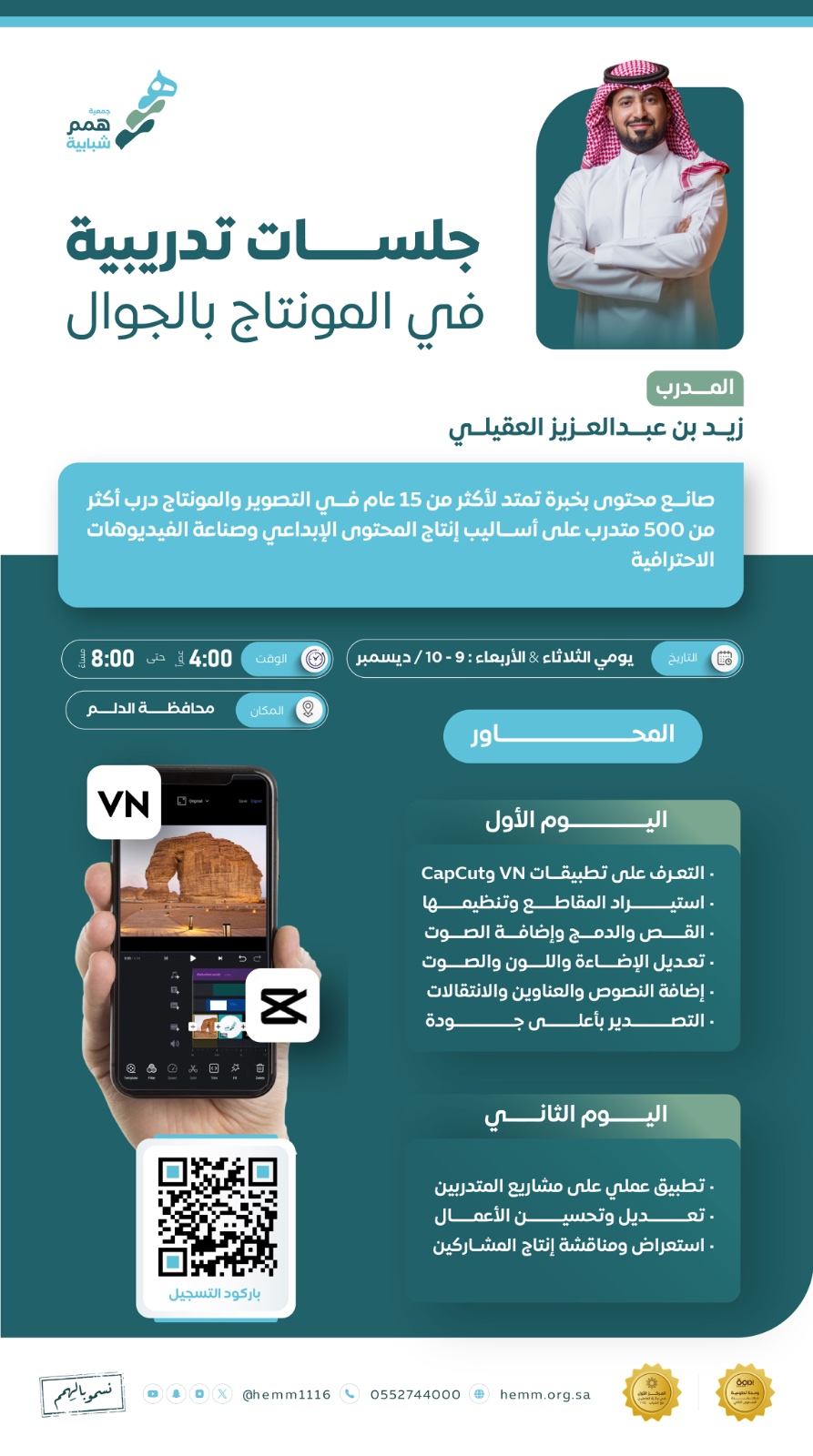 جمعية شبابية تعزز القيم وتبني المهارات وتفعل المؤثرين لإحداث أثر قيمي مستدام في بيئات آمنة ومن خلال برامج نوعية وخبرات متخصصة